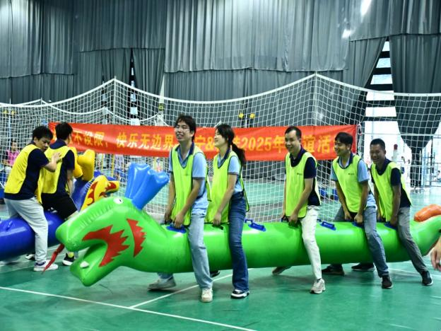 以 “聚” 為魂,年輕的我們?cè)趨f(xié)作中綻放光芒 緊張的競(jìng)賽過后,趣味拓展活動(dòng)以最鮮活的方式,詮釋了 “年輕即協(xié)作” 的團(tuán)隊(duì)哲學(xué)。執(zhí)行總經(jīng)理蘇總的開場(chǎng)致辭溫暖而有力:“19 年的成長(zhǎng),源于每一位佳寧人的并肩。今天,我們?cè)谟螒蛑欣m(xù)接這份情誼�!� “車輪滾滾” 里,從最初的步伐不一、屢屢 “卡殼”,到后來有人喊著口號(hào)統(tǒng)一步調(diào)、有人觀察路線及時(shí)提醒,各組最終都實(shí)現(xiàn)了 “平穩(wěn)前行”;“旱地龍舟”“旱地冰壺” 中,大家從 “各自為戰(zhàn)” 到 “目標(biāo)一致”,每一次成功都伴隨著歡呼與擊掌。 這些看似簡(jiǎn)單的游戲,恰是工作場(chǎng)景的縮影:就像 “車輪滾滾” 需要統(tǒng)一節(jié)奏,跨部門協(xié)作亦需目標(biāo)同向;如同 “冰壺” 需要精準(zhǔn)計(jì)算,項(xiàng)目推進(jìn)更離不開細(xì)節(jié)把控。年輕的佳寧人,在歡笑中讀懂了 “團(tuán)隊(duì)” 二字的重量 —— 聚是一團(tuán)火,散是滿天星。